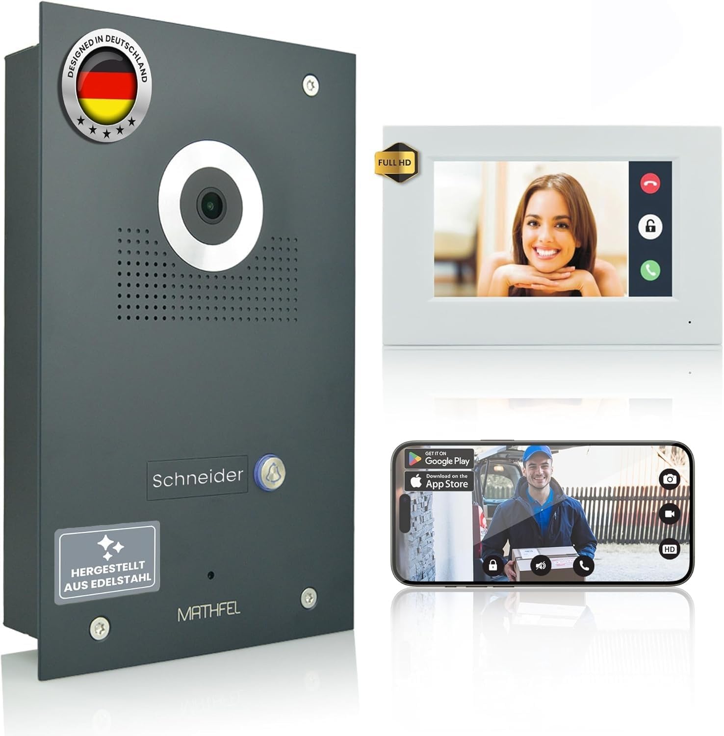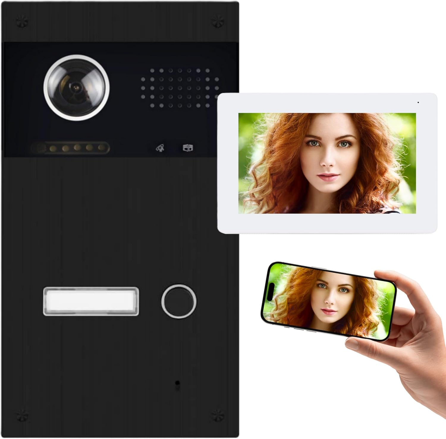 Mathfel IP WLAN Video Türsprechanlage Unterputz für Einfamilienhaus, IP Türklingel mit Kamera 170° Weitwinkel, 7 Zoll Full HD Monitor, Nachtsicht, App Steuerung, drahtlose Verbindung