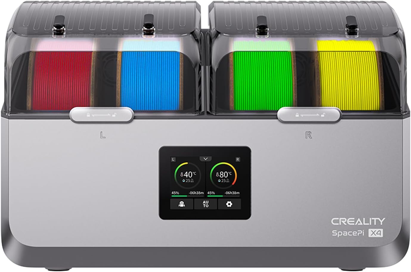 Filamenttrockner für bis zu 4 Spulen Der Creality SpacePi X4 Filament Trockner wurde entwickelt, um bis zu vier Filamentspulen gleichzeitig zu trocknen. Dies hilft, Feuchtigkeit aus dem Filament zu entfernen und unterstützt stabile Druckergebnisse beim 3D-Druck.