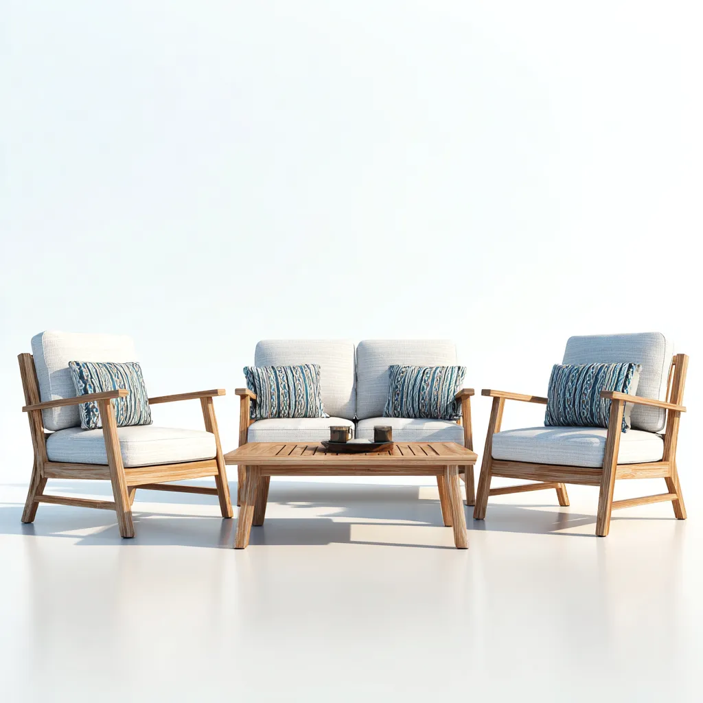 Dieses Garten Lounge Set eignet sich für den Einsatz im Garten, auf der Terrasse oder im Außenbereich von Wohnanlagen. Die klare Holzkonstruktion in Kombination mit gepolsterten Sitzflächen schafft eine ausgewogene Sitzgruppe für entspannte Aufenthalte im Freien.